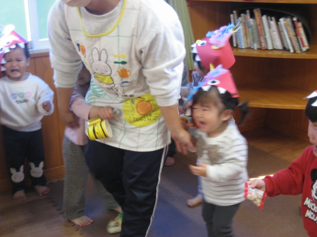 今日は節分。保育園でも豆まき会が行われました。
